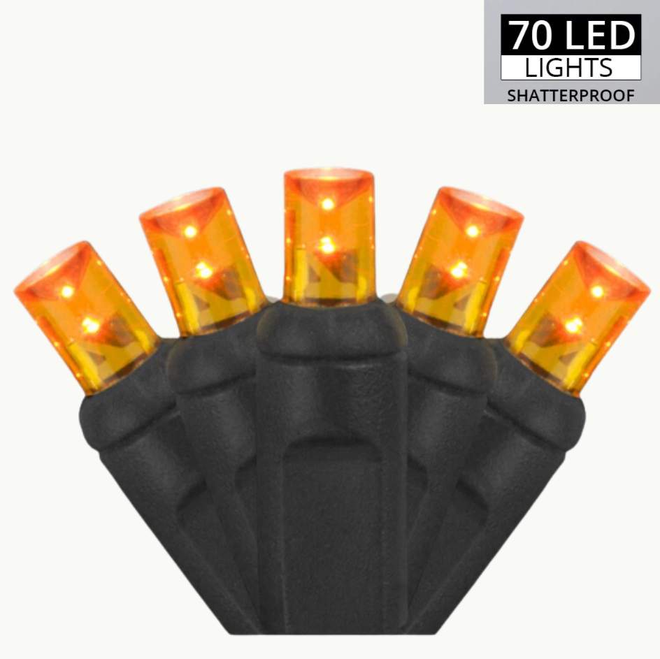 Orange Halloween String Lights – 70 Orange LED Lights 24FT On Black Wire